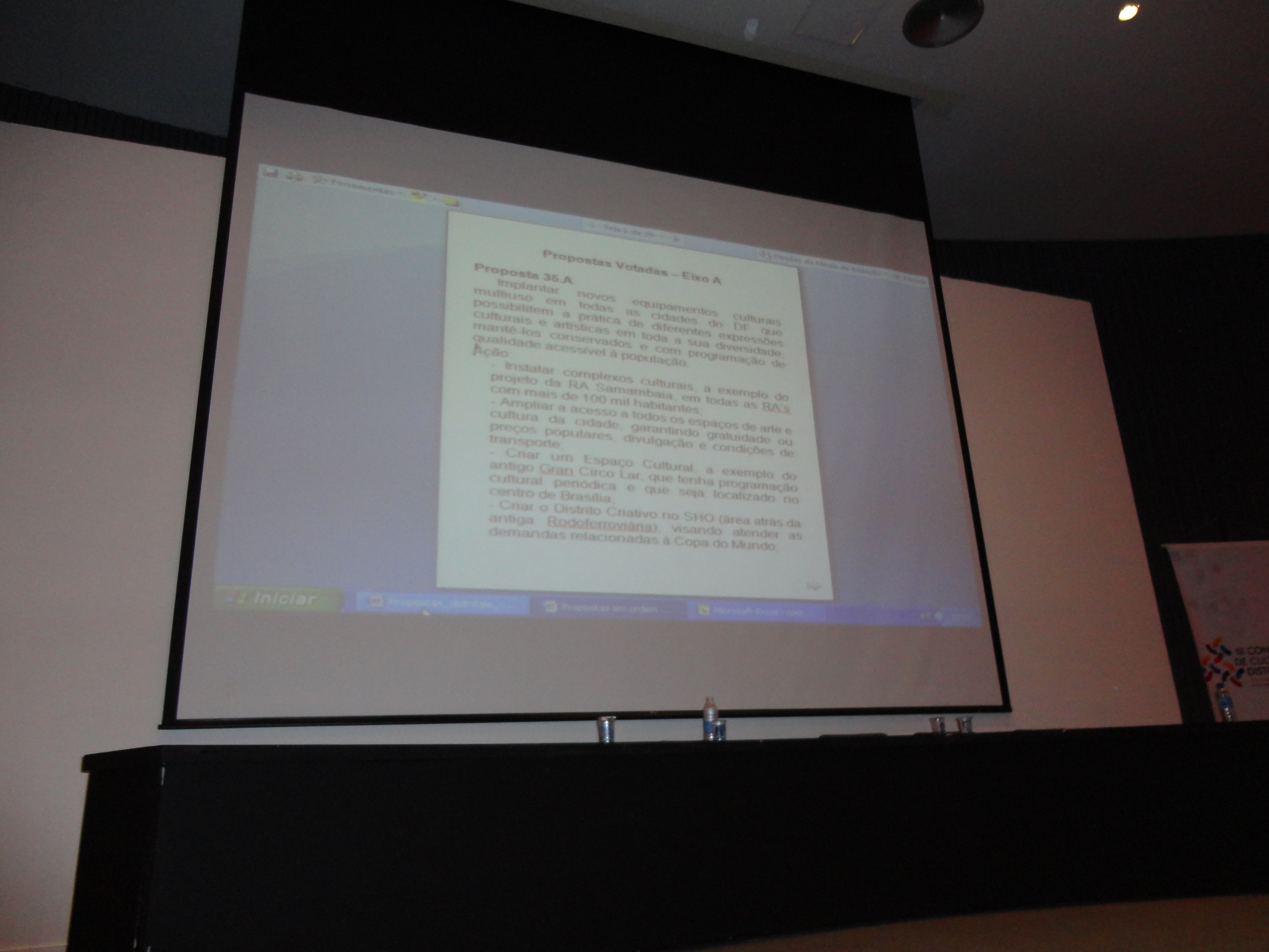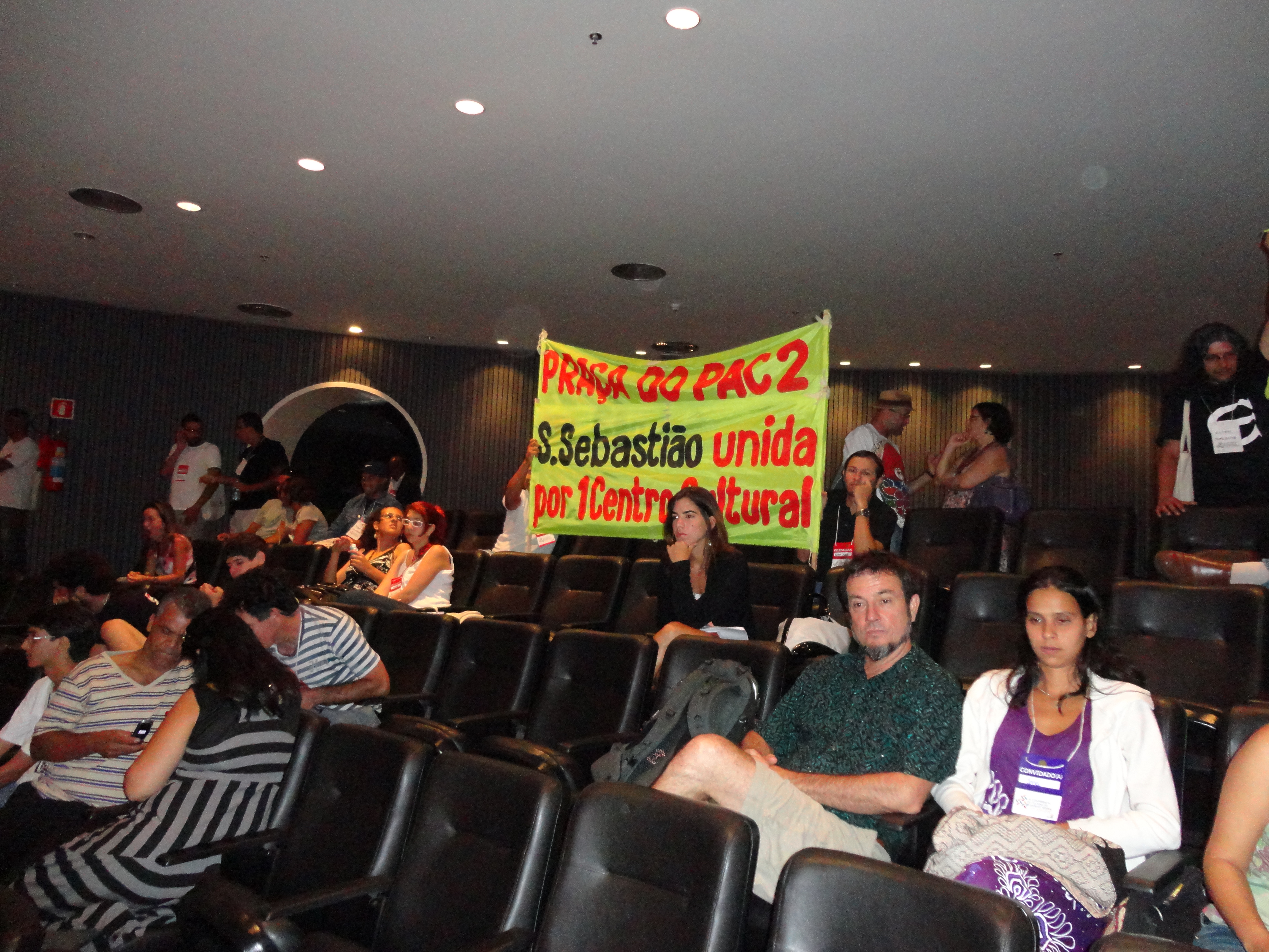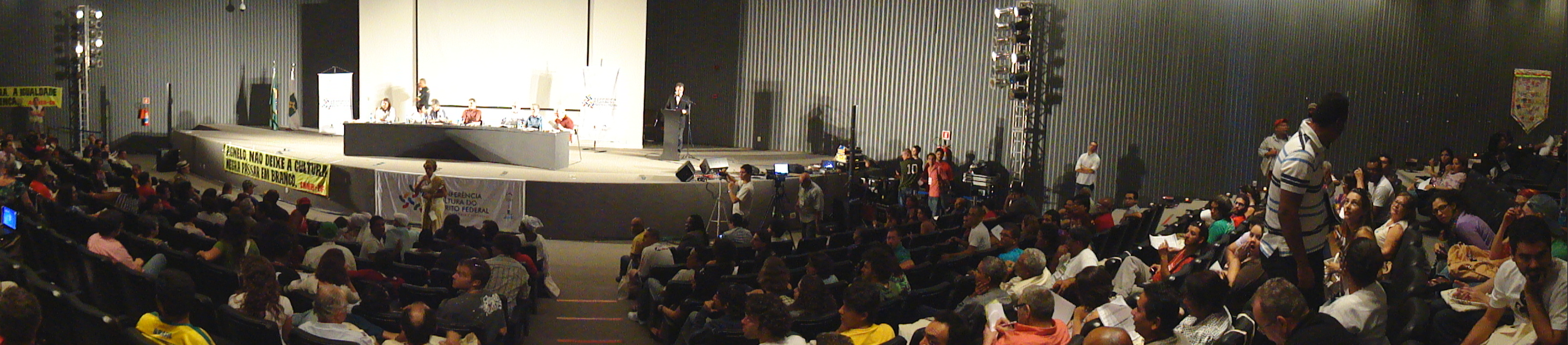 Não há muita coisa para falar do terceiro dia da III Conferência de Cultura do DF. Como a organização do evento já estava desgastada, pouparam de deixar na Mesa o Governador Agnelo Queiroz (PT), colocando o vice-governador, Tadeu Filipelli (PMDB) para ouvir as reclamações dos agentes culturais do DF. Também participaram da Mesa Pedro Pontual (Secretaria Geral da Presidência da República), Hamilton Pereira (Secretário de Cultura do DF), Cláudio Abrantes (Presidente da Comissão de Cultura da Câmara Legislativa do DF, mais conhecida como Casa do Terror pelas falcatruas de desvio de verbas) e Geraldo Magela (Secretário de Habitação do DF, que não se sabe o por quê de ter ido à Conferência na abertura e encerramento se não tem nada a colaborar com ela). Todos eles foram muito vaiados pelo público, que ficou insatisfeito com a metodologia adotada na Conferência. O público reclamou também de não haver um representante dos delegados e conselheiros na Mesa. Os conselheiros de cultura tomaram posse e o encerramento foi realizado pelo grupo Marafreboi.