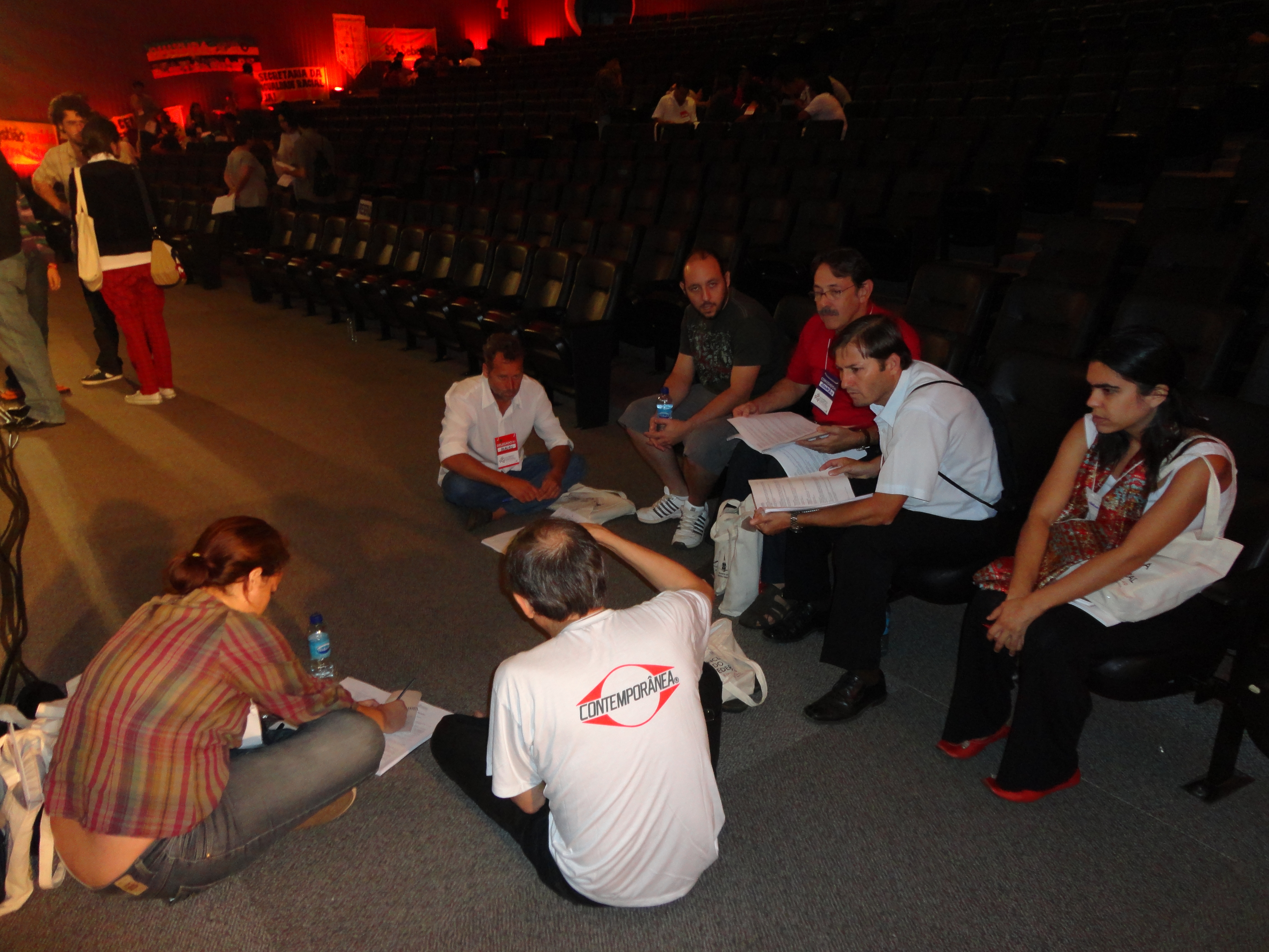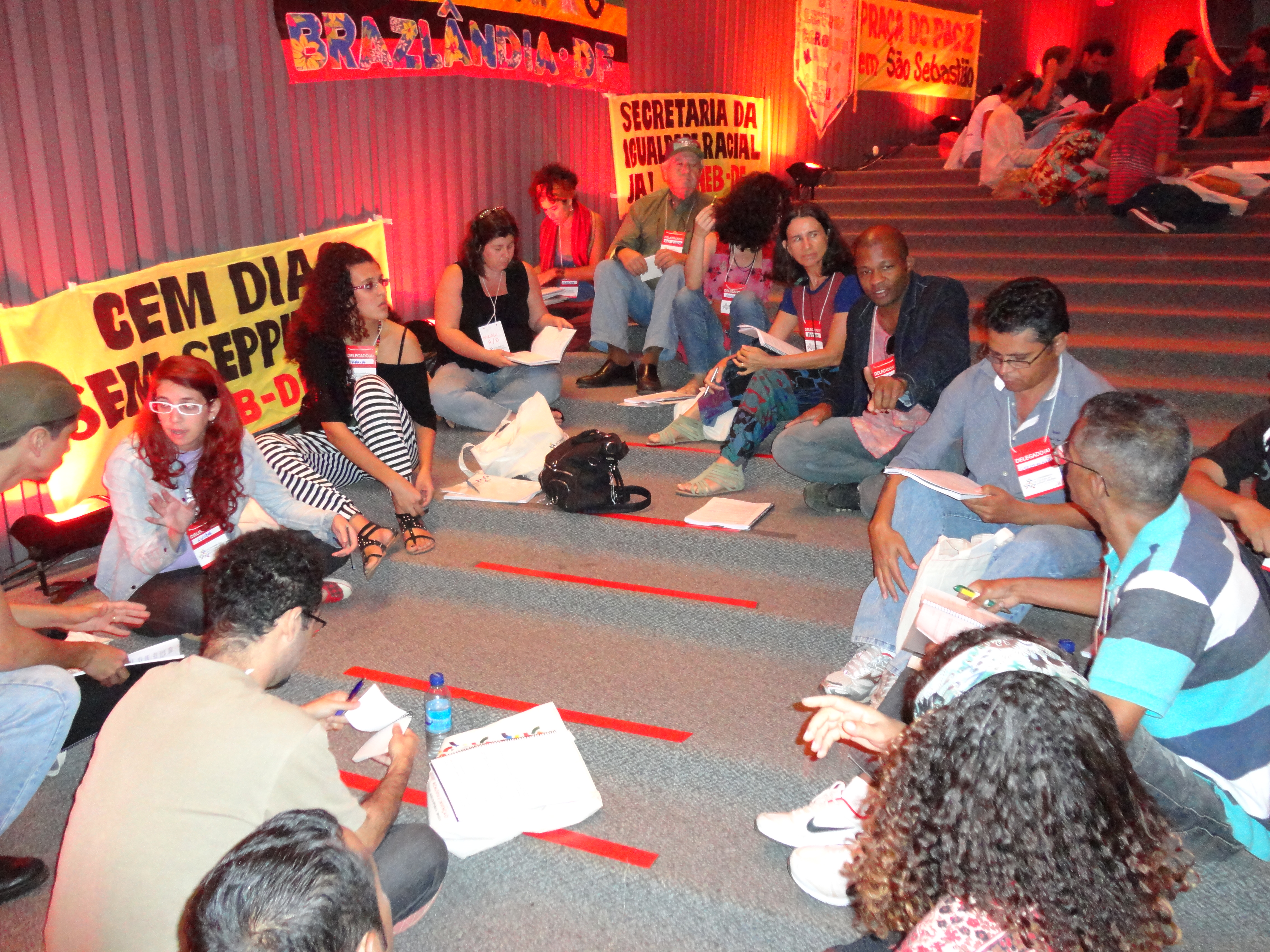 O segundo dia da Conferência de Cultura do DF foi bastante tenso. A organização do encontro bateu cabeça várias vezes com a plenária, substancialmente nos Eixos A e B (com mais participantes), fruto de uma desorganização na fase das pré-conferências, que não politizaram e prepararam os delegados para a Conferência, justamente para passar ou barrar mais facilmente as propostas que o governo queria. Para ler a relatoria do segundo dia da III Conferência de Cultura do DF, clique aqui!