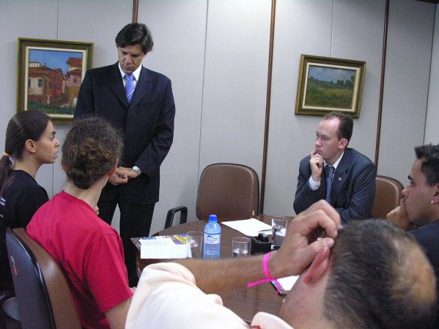 Pelo fato da Executiva ser bastante desorganizada e não ter sequer um site ou telefone de contato, a assessoria do MEC entrou em contato através de meu e-mail pessoal, solicitando uma reunião em cerca de 2 semanas. Avaliamos que não tínhamos condições de participar em tão pouco tempo, até pelo caráter do movimento estudantil não conseguir se deslocar com facilidade em um país de dimensões continentais como o Brasil sem planejar com bastante antecedência – daí nossos encontros serem sempre nas férias de julho e os menores nos feriados de abril e novembro. Então, pecamos pela nossa desorganização, mas Fernando Haddad não só nos recebeu como nos convidou para retornar e apresentar a nossa contraproposta de DCN – que está sendo escrita até hoje!