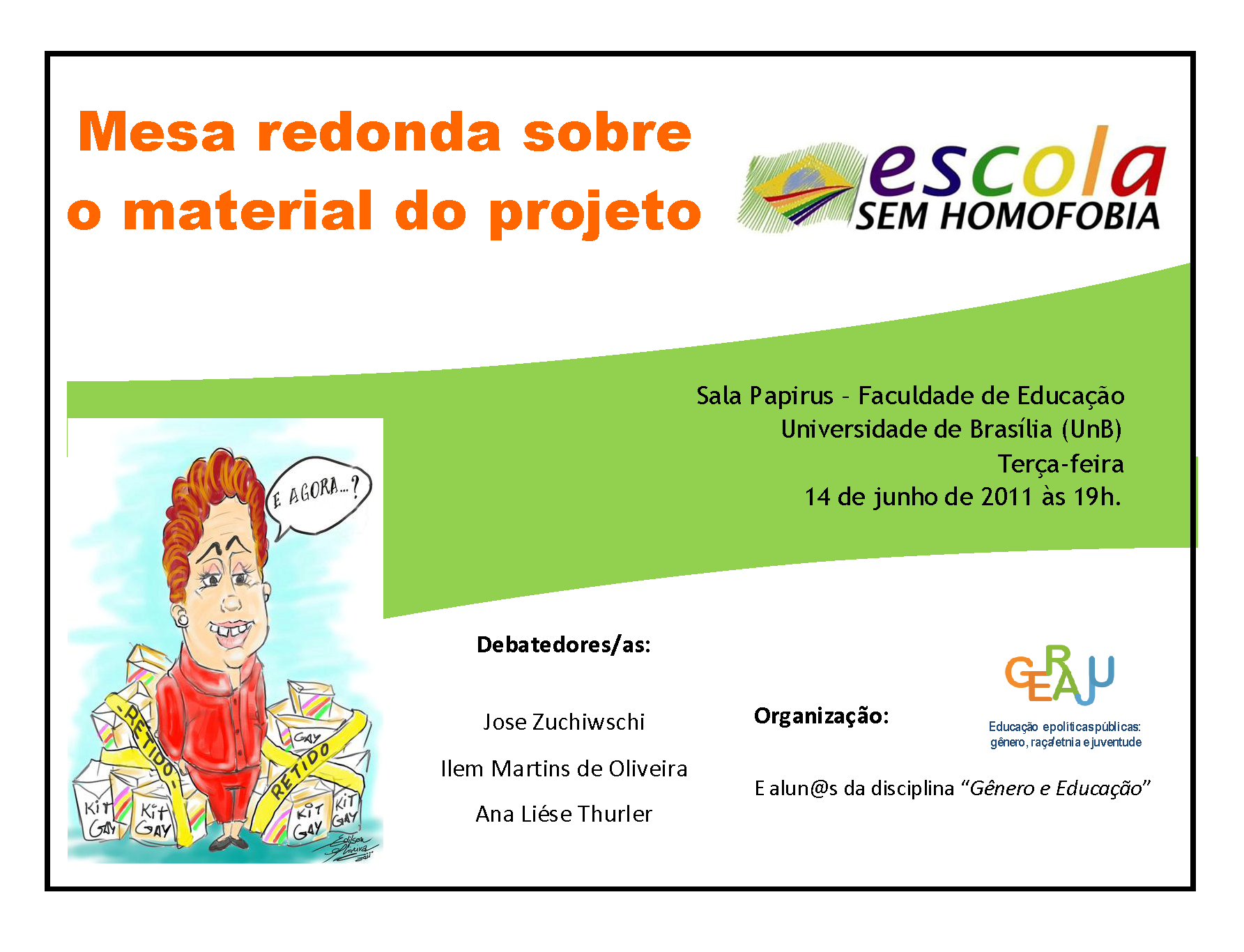 Cartaz – Escola sem Homofobia – FE – UnB – 14/06/2011